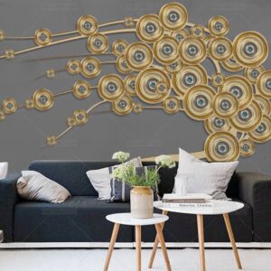 Fashion modern light luxury creative tree golden relief line TV background wall 23711919