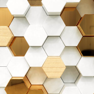 Abstract white luxury background with golden hexagons. 3d rendering