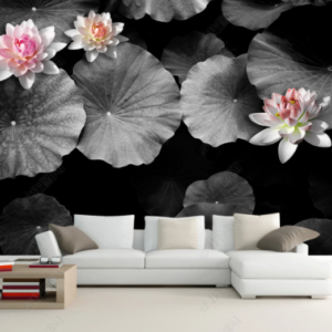 gorgeous and cool black and white beautiful lotus wall (16885458)