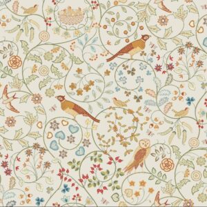 Vintage seamless ornament with birds in foliage and flowers on light beige background. Vector illustration.