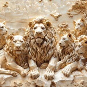 Beautiful lions 3d relief wallpaper. Mural wallpaper. 849237606
