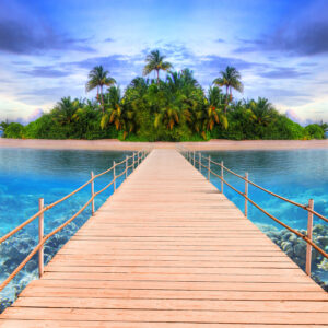 Pier to the tropical island of Maldives