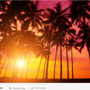 Tropical sunset on remote island coast. Beach sunset with coconut palm trees silhouettes and ocean. By nevodka.com