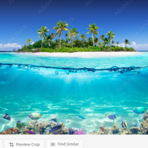 Tropical Island And Coral Reef - Split View With Waterline By Romolo Tavani