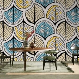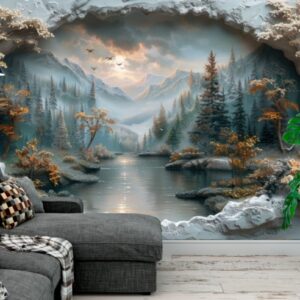 3D relief mural wallpaper with mythical creatures, enchanted forests, and whimsical