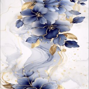 floral background with marble pattern. watercolor navy blue background with elements of gold splashes. great for backgrounds,
