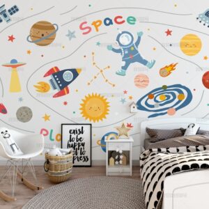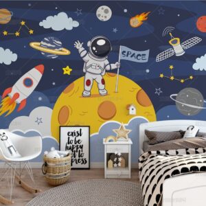 Modern cartoon astronaut hand-painted space planet rocket starry sky children's room 34260192