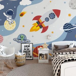 Cartoon world universe planet space child bedroom mural (TN8819)