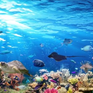 Licensed Underwater Scene With Coral Reef And Exotic Fishes