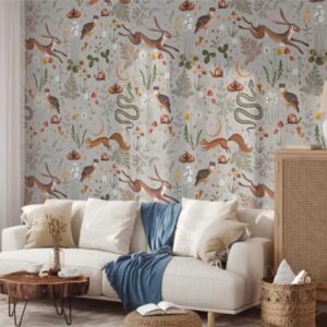 Horses pattern. Wild horses and forest flowers and tree branches. Earthy brown horse pattern. Dark horse pattern. Modern illustration. Beautiful seamless design for wrapping paper, textile, ... See More By Lena Lapina