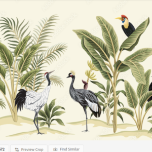 Tropical vintage bird, parrot, crane, toucan, palm tree, banana tree and plant floral seamless border ivory background. Exotic jungle wallpaper. By good_mood