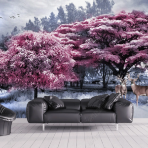 beautiful pink forest big tree elk landscape (17253245)