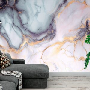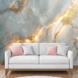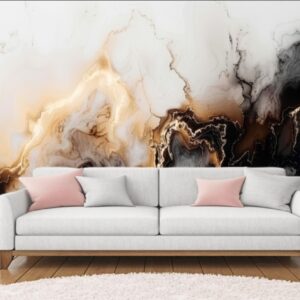 Marble wall design with golden floral pattern, elegant design, luxurious decor, high quality texture marble, gold ornament details, classic style,baroqu