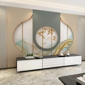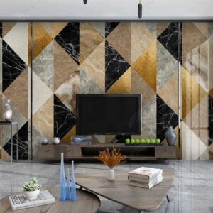 European style luxury black gold marble art graffiti living room TV background wall-34268335