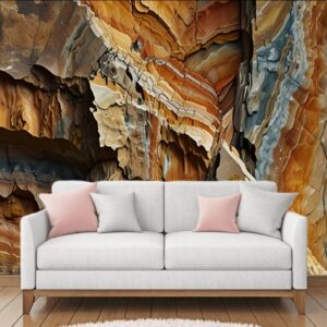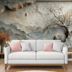 3D relief wallpaper with painting of lifelike tree bark textures and woodland beauty of natural landscapes with a realistic and textured mural wall art