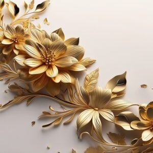 3d white flower Wallpaper Background golden art for digital printing wallpaper, mural, custom design wallpaper