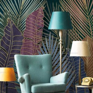 creative high-end golden leaves golden branches and jade leaves sofa background wall wallpaper mural 34181013