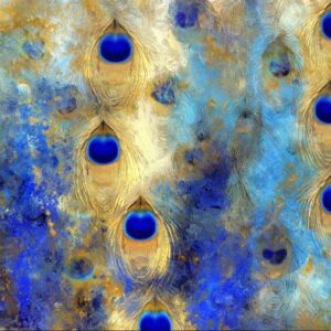 happy cute bird in flower blossom atmosphere golden oil paint abstract art