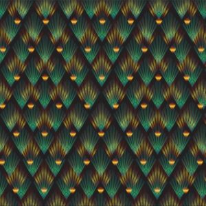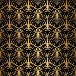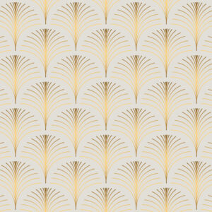 Vintage style elegant floral art deco repeat fan pattern/stylized palm leaf in golden metallic gradient on light background. Seamless art deco fan pattern.