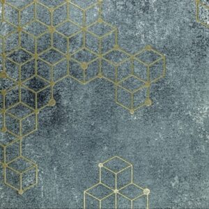 Texture of black wallpaper with an ornament of palm leaves with gold and silver elements. Luxury wallpaper with palm leaves ornament. ADD
