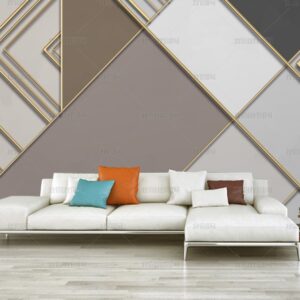 Modern light luxury geometric plaid gray TV sofa background wall 27657640