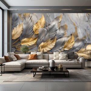 creative high-end golden leaves golden branches and jade leaves sofa background wall wallpaper mural 34181013