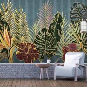 light luxury tropical plant leaves gold relief line background wall 23139414