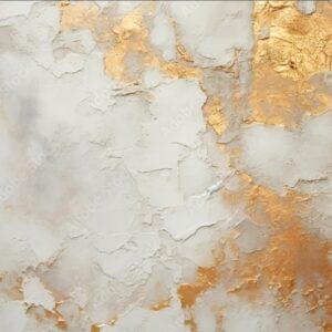 Art acrylic smear blot painting wall. White and golden abstract messy wall stucco texture background. Yellow lined decorative wall paint. White, gray and gold color canvas texture. AD 802929753