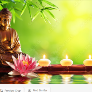 Buddha Statue With Candles In Natural Background By Romolo Tavani