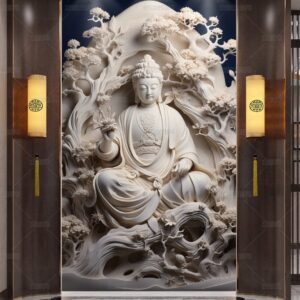 Buddha statue sculpture 3D simple plaster relief TV porch background wall 33748731
