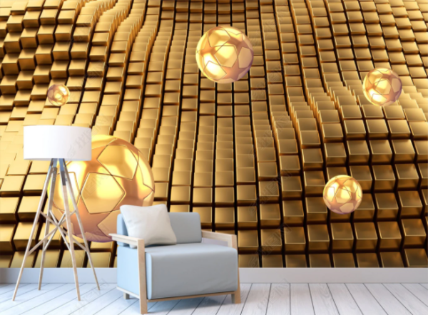 Abstract square space golden sphere 3d background wall(17527861)