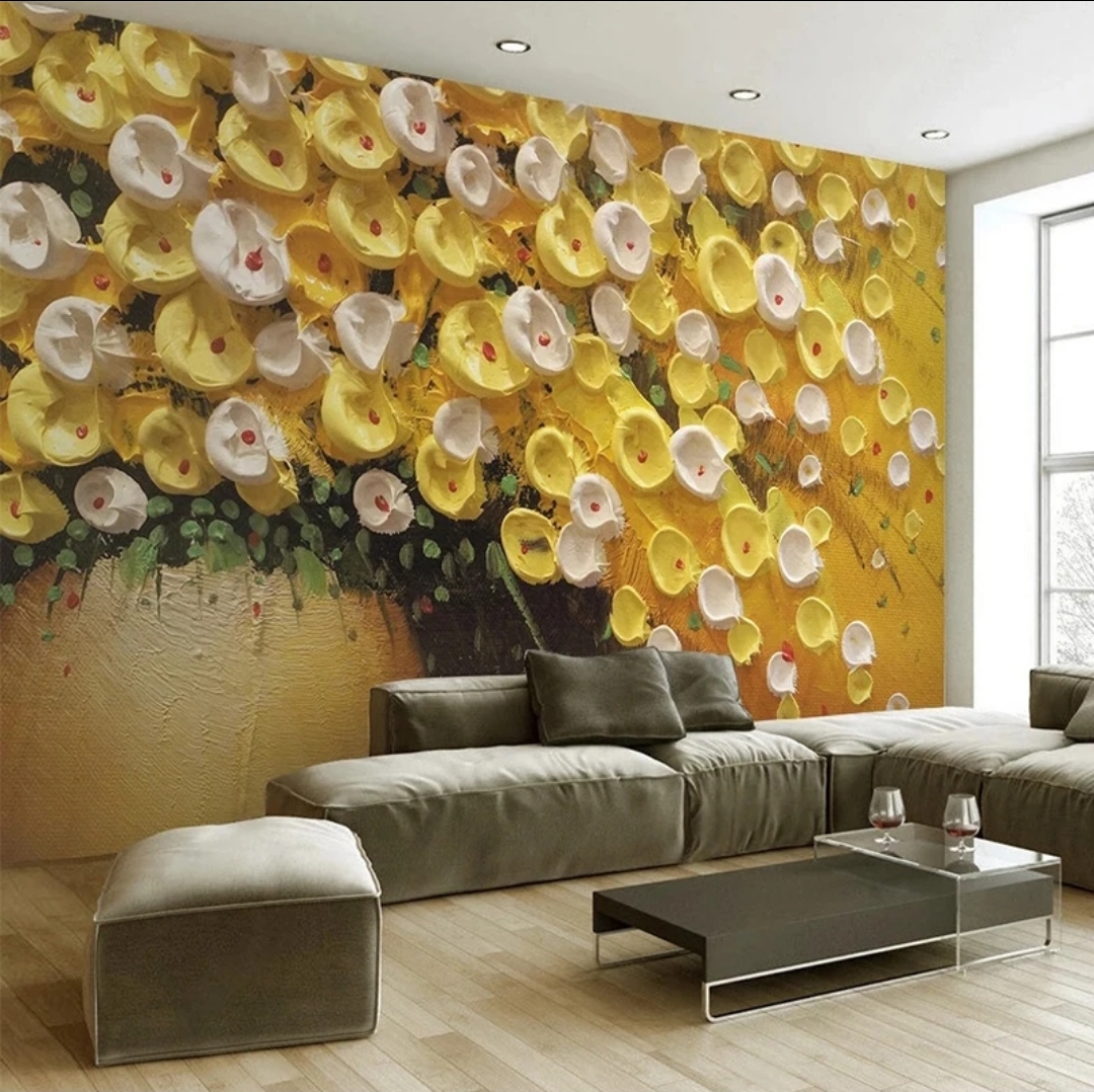 Custom Photo Wallpaper 3D Stereo Oil Painting Flowers Yellow Tree Modern Art