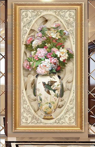 European oil painting flower vase relief porch background wall decoration (16772962)