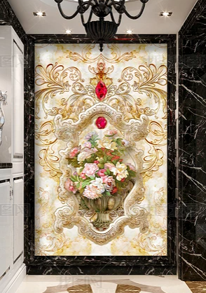 European-style marble oil painting vase flower embossed porch background wall(16831607)