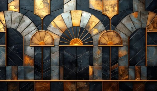Geometric architecture background. Retro vintage black, gold, and silver roaring