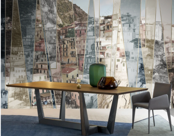hand painted nordic city architecture landscape background wall mural(25631381)