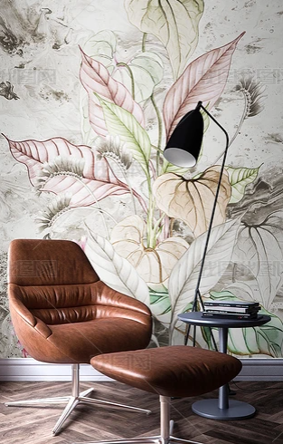 minimalist plant leaves hand-painted TV sofa background(26098092)