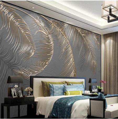 Modern Abstract Light Luxury 3D Feather INS Golden Relief Lines Mural (TN661882)