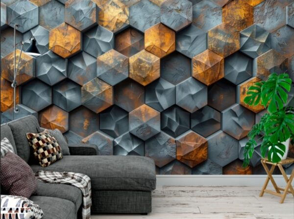 Modern geometric 3D relief wall art with overlapping polygons and sharp angles