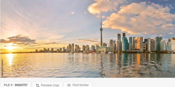 Panorama of Toronto skyline at sunset in Ontario, Canada. By Javen